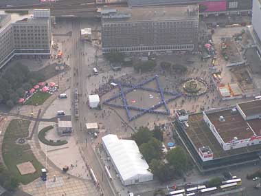 Auf der Veranstaltung des Jesus Tages organisierte die BRÜCKE Berlin-Jerusalem einen lebenden Davidstern auf dem Alexanderplatz in Berlin mit der aktiven Mitarbeit von Anne-Rose Krebs (Gestaltung) und Udo Brehmer (Luftaufnahmen) sowie Mitarbeit des CFFI